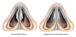- استشارة مع متخصص: من الضروري استشارة متخصص في الأنف والأذن والحنجرة أو جراح تجميل الأنف لتقييم شدة الانحراف وضرورة الجراحة.